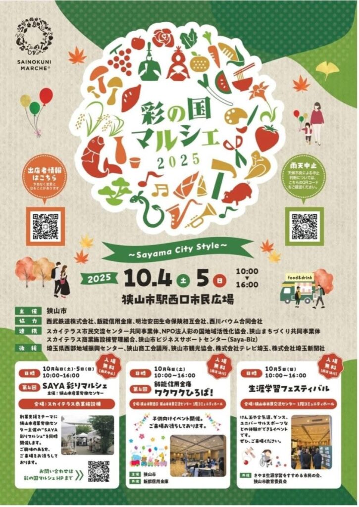 彩の国マルシェ あす(日)狭山市駅西口 10〜4時
