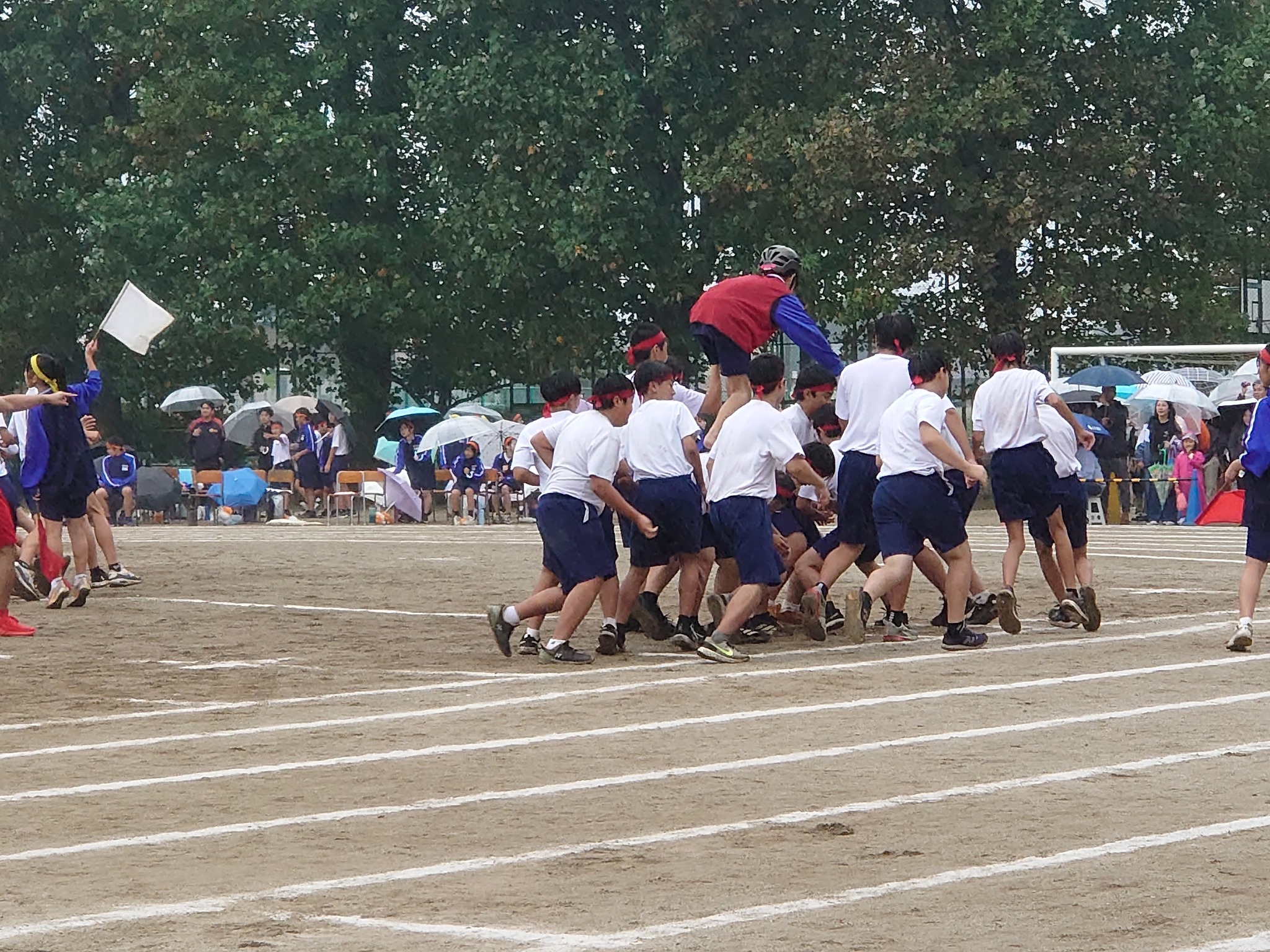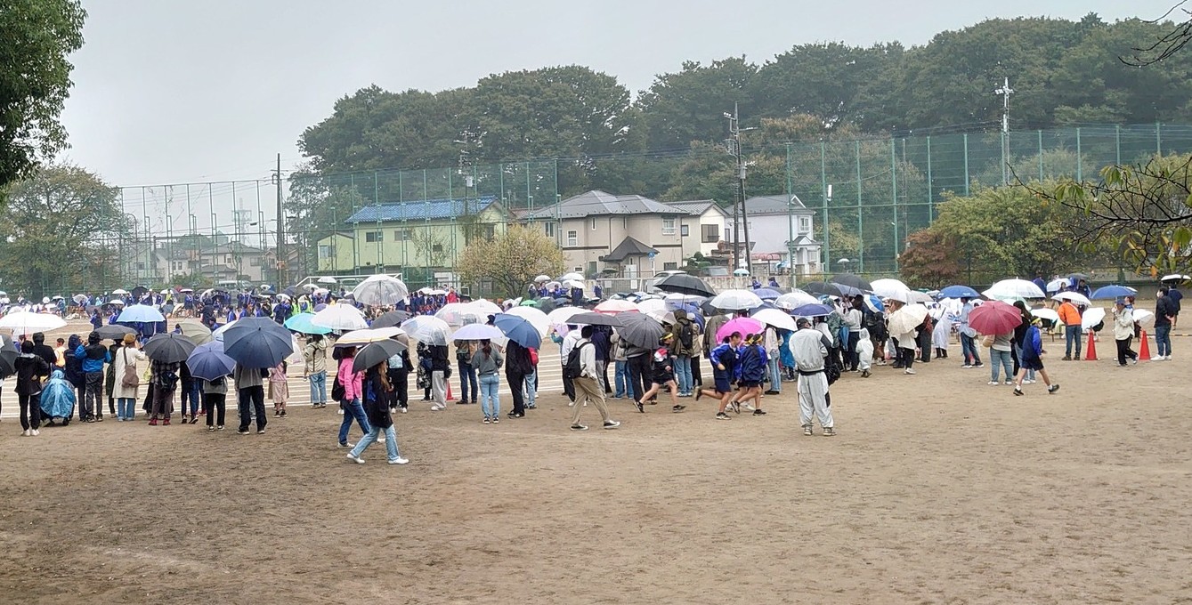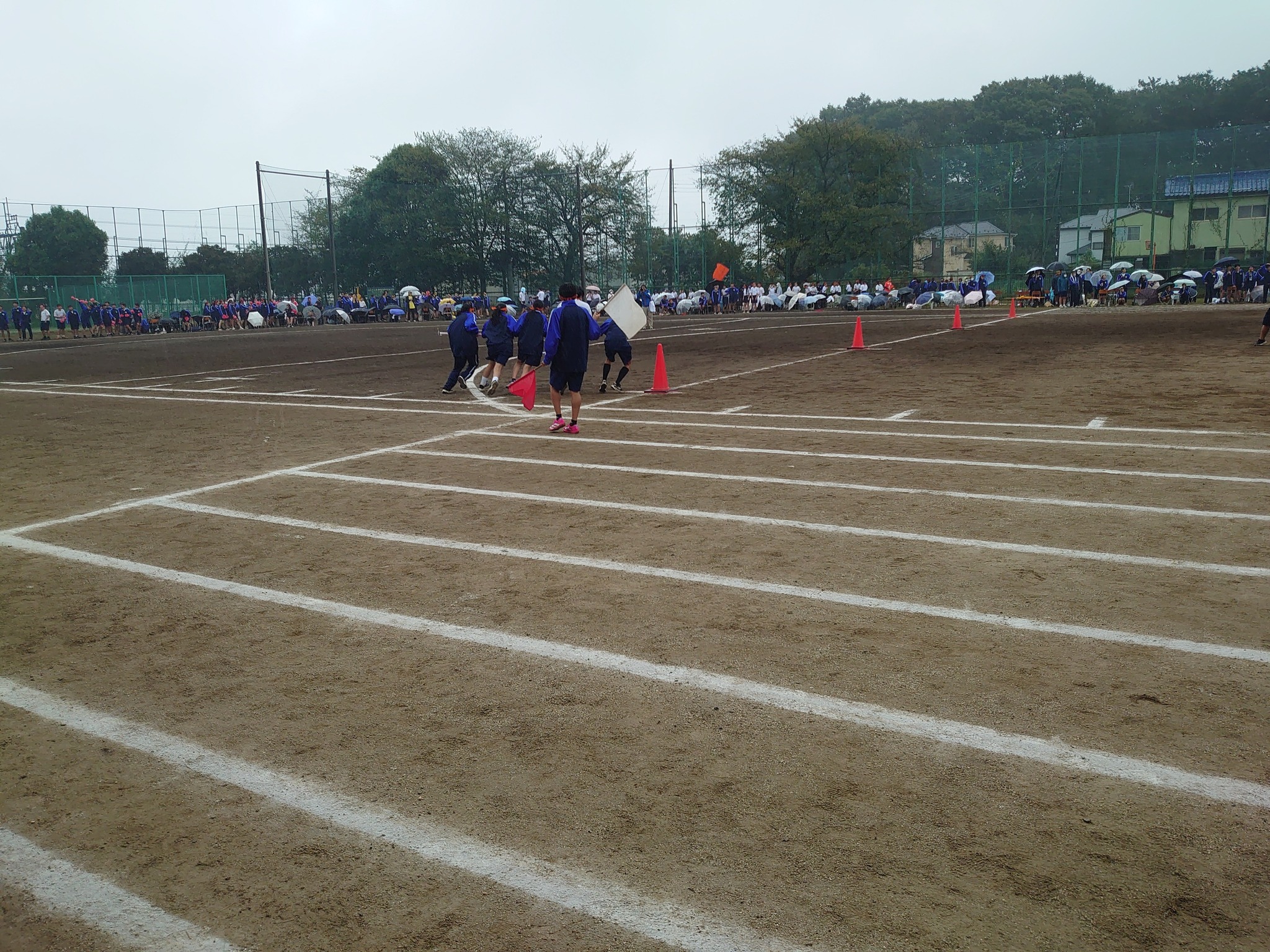 開催の判断を決める時間は☁曇りでした。☔雨の中なので、親も、競技に参加していない子達も🔥声援はいつもの何割増し👍。知り合いの子と話しましたが、寒いながらも楽しんでおり、子ども達にとって忘れない思い出になったようです。
