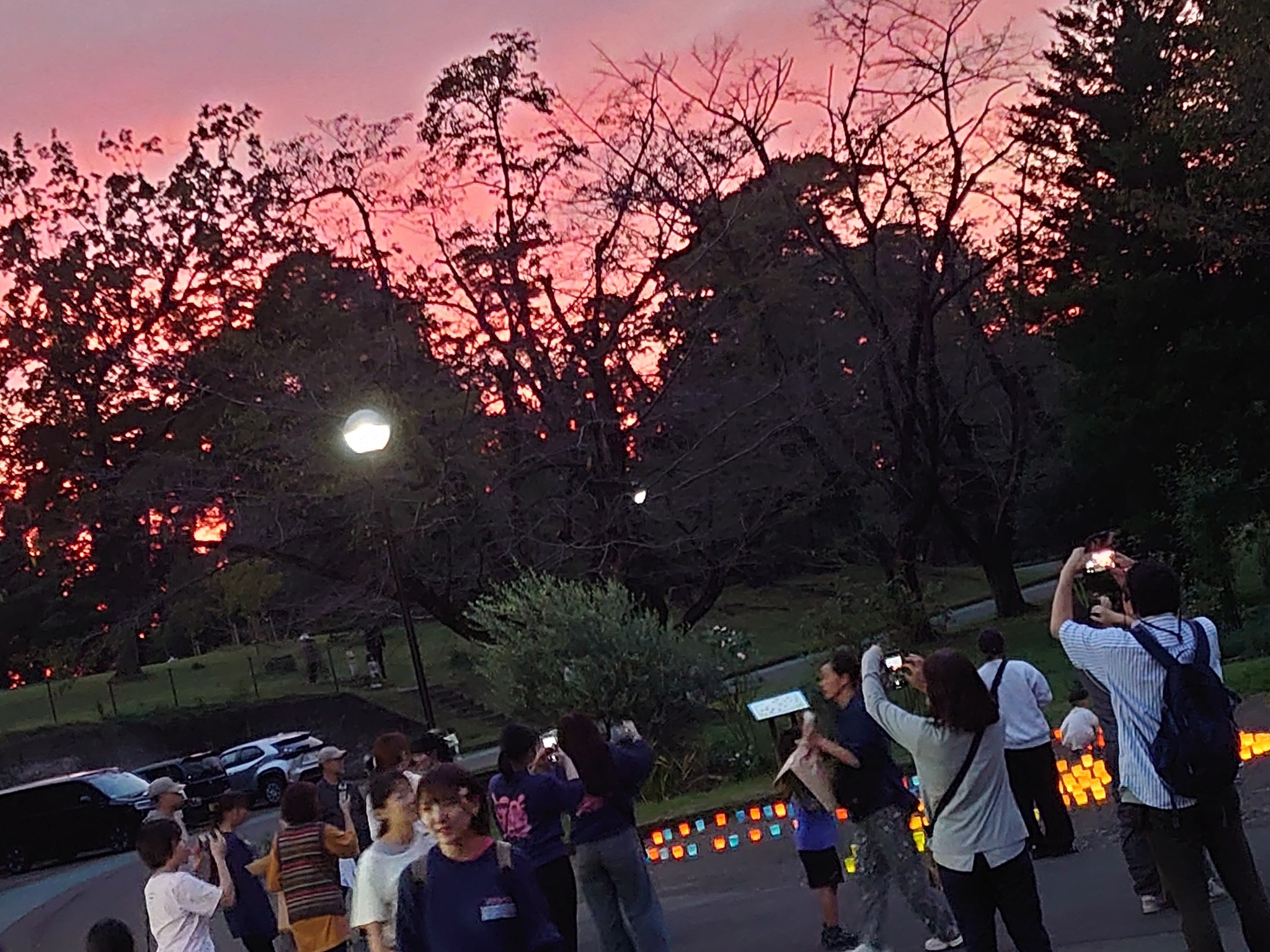 稲荷山フェスタ 『🌇夕焼けマニア』としては、ちょうどイイ👍タイミングで会場に戻っての🕯キャンドルでした。会場で朝買った🥕人参がとってもおいしかったので農家さんに御礼を言ったり、「公園の駐車場を有料にしないと公園を利用しない人が停めて、☔️雨の日でも🚗満車になってしまう」とのご意見を複数の方から頂きました。公園は県営・駐車場は市営・公園の管理は民間で、イイ公園にしていきたいです(管理の所長などとも話しました)。ご意見がございましたら。