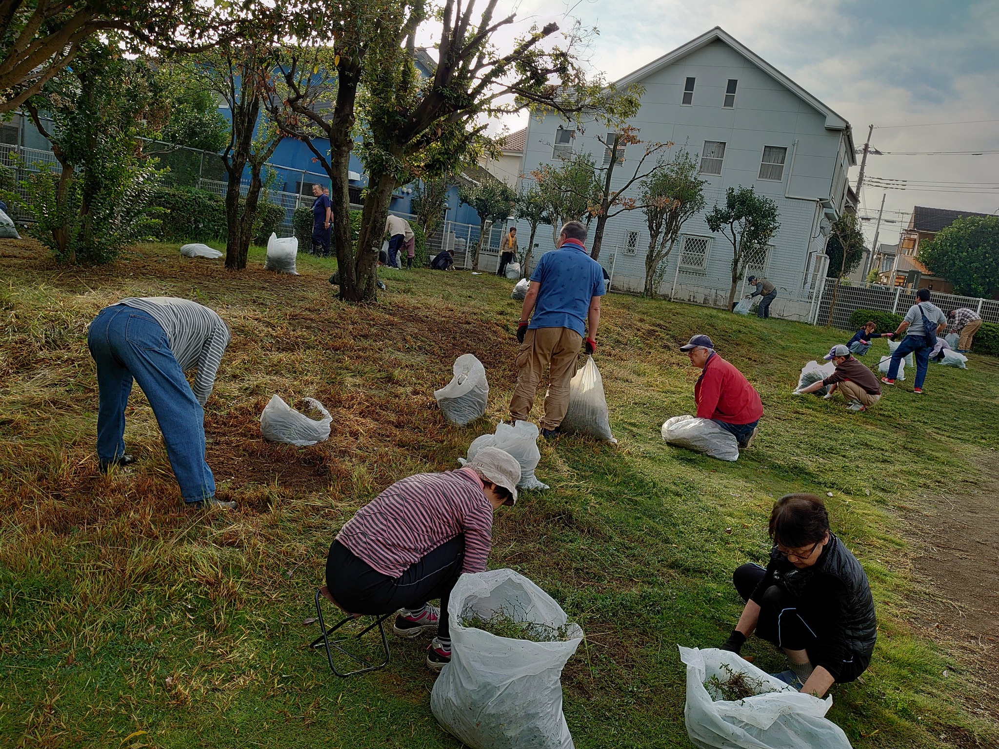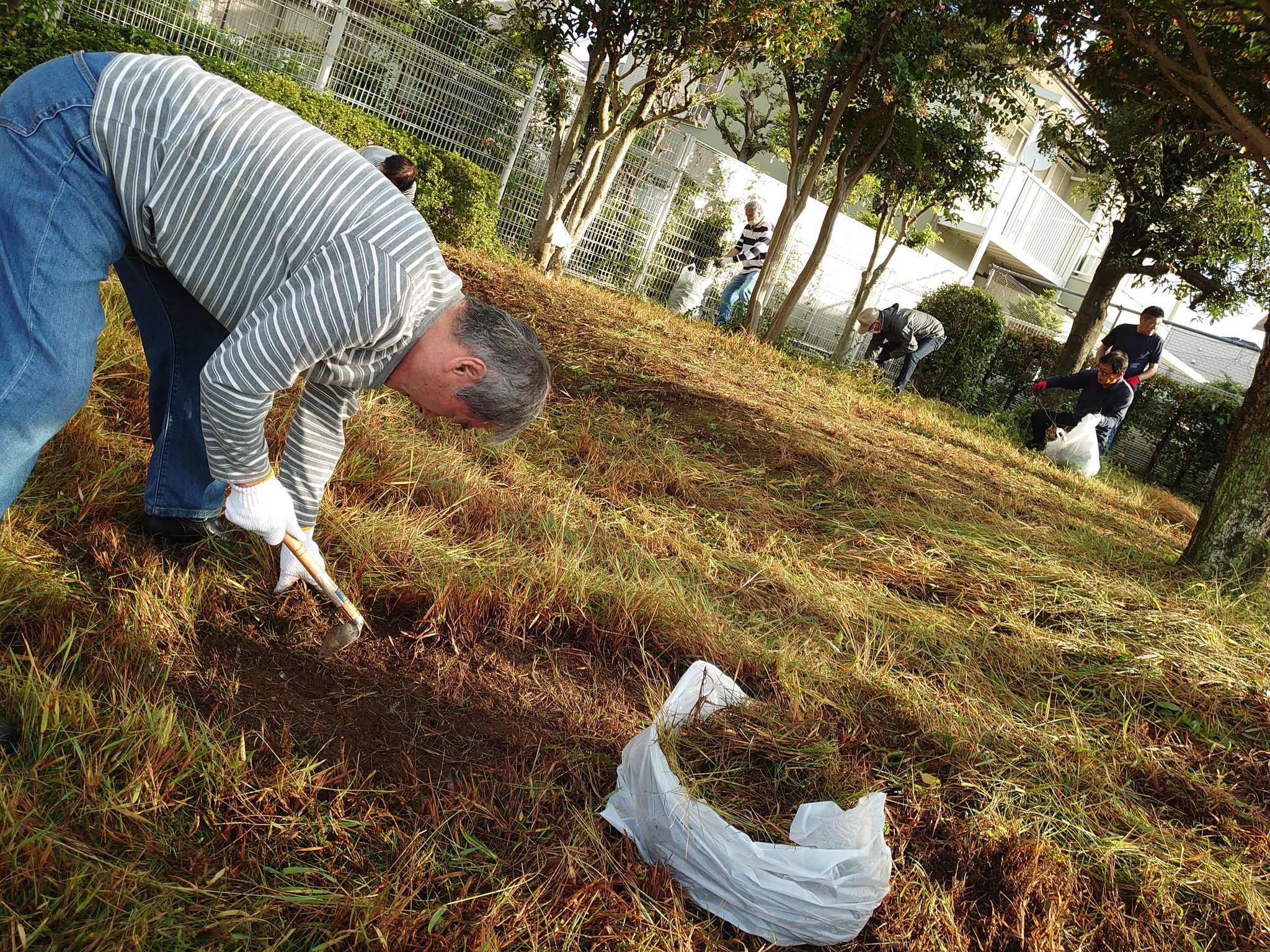 「芝生になれば、草刈りが楽なのですが」との役員さんの声。