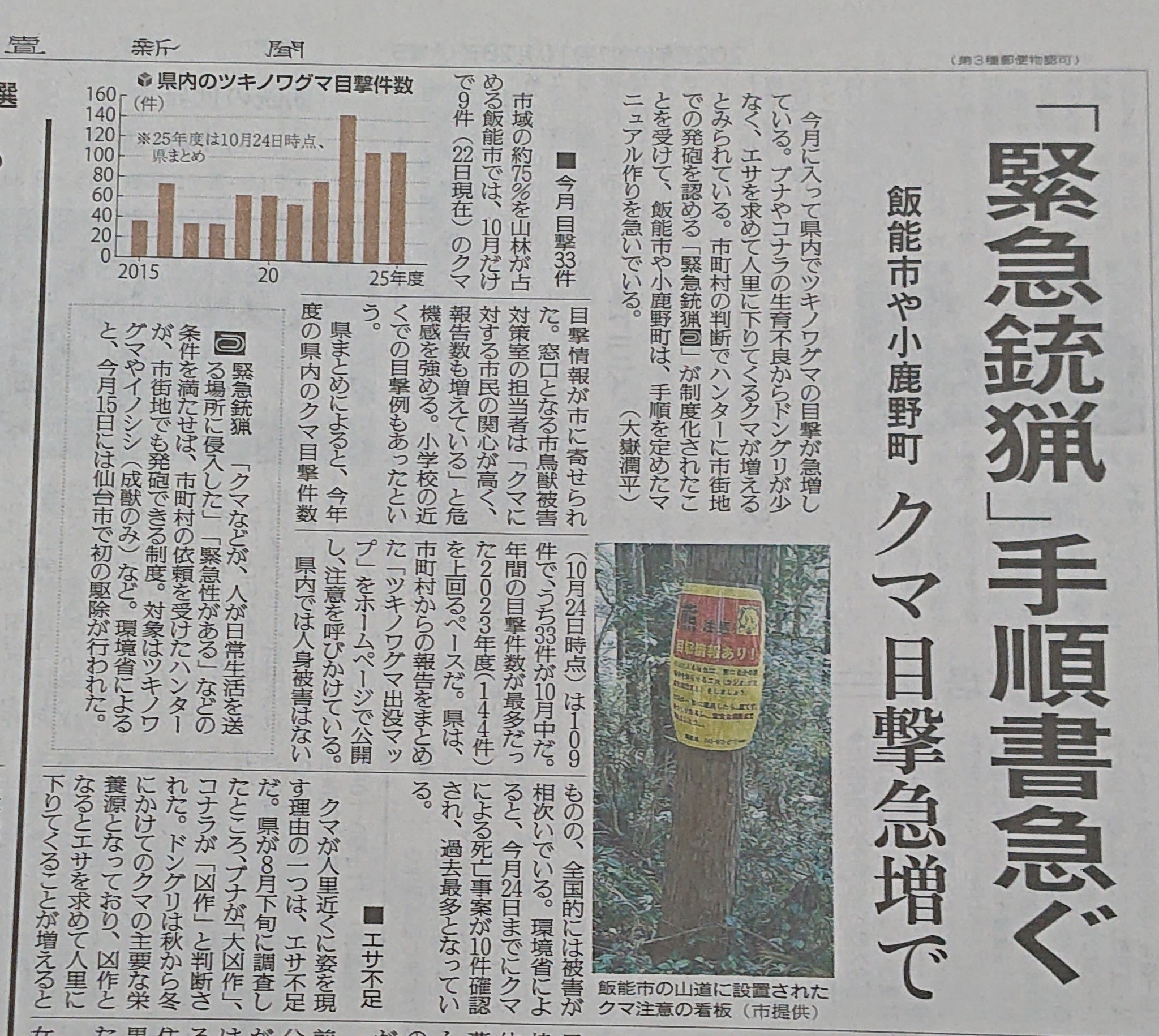 🌳林業への就職を考えている市民の方から先日お話を伺い、また、クマの県内出没について市民の方から質問を受けています。⇩ネットで🐻出没目撃情報の地図を見る事が出來ます。