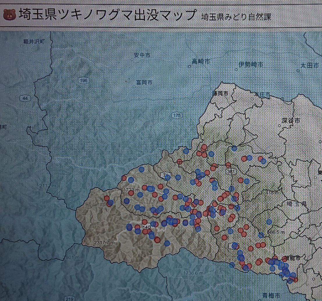 埼玉県ツキノワ熊🐻出没マップ⇩ (最新の更新は昨日)
