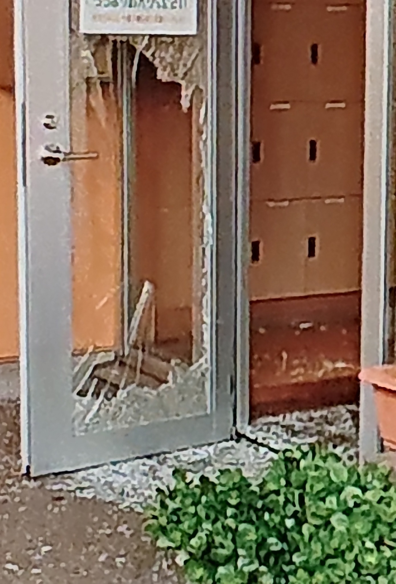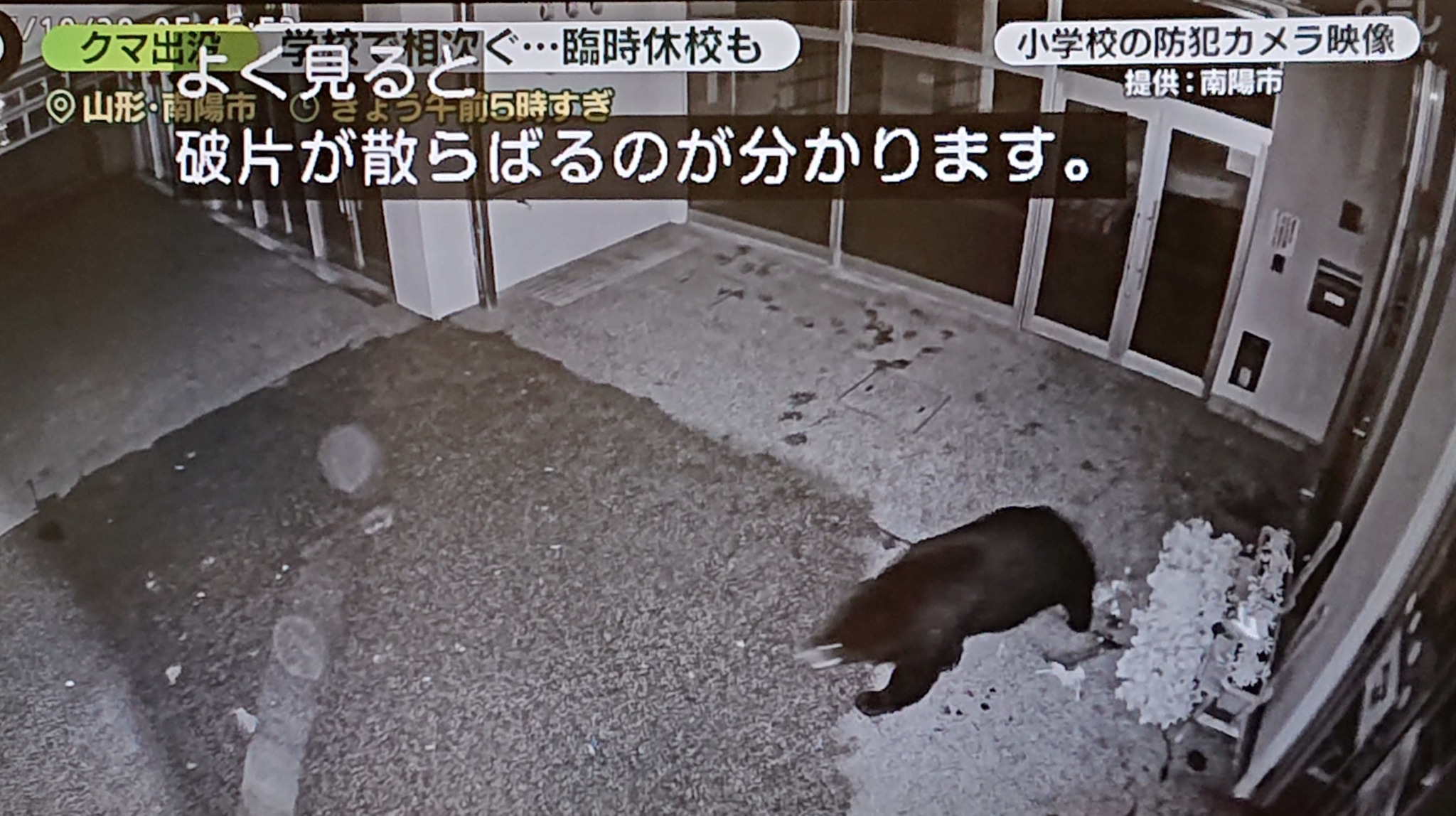 学校のガラスは分厚いので、少し距離があって🐻加速して窓ガラスにぶつかるのなら分かりますが、📷こんな短い距離で🐻ぶつかって粉々に割れてしまうのですね。