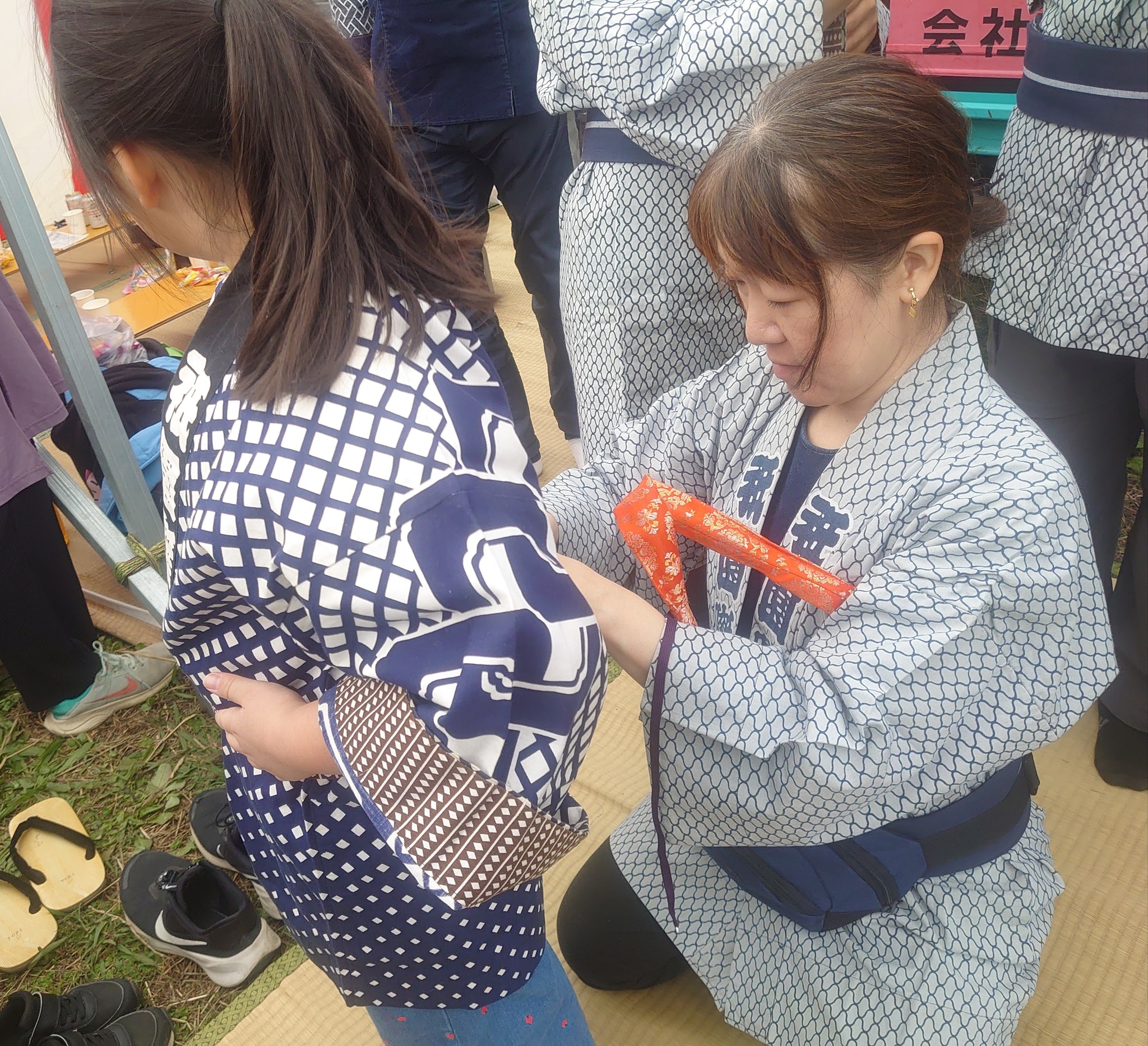 👧子どもの帯締めを大人がみてあげているところ
