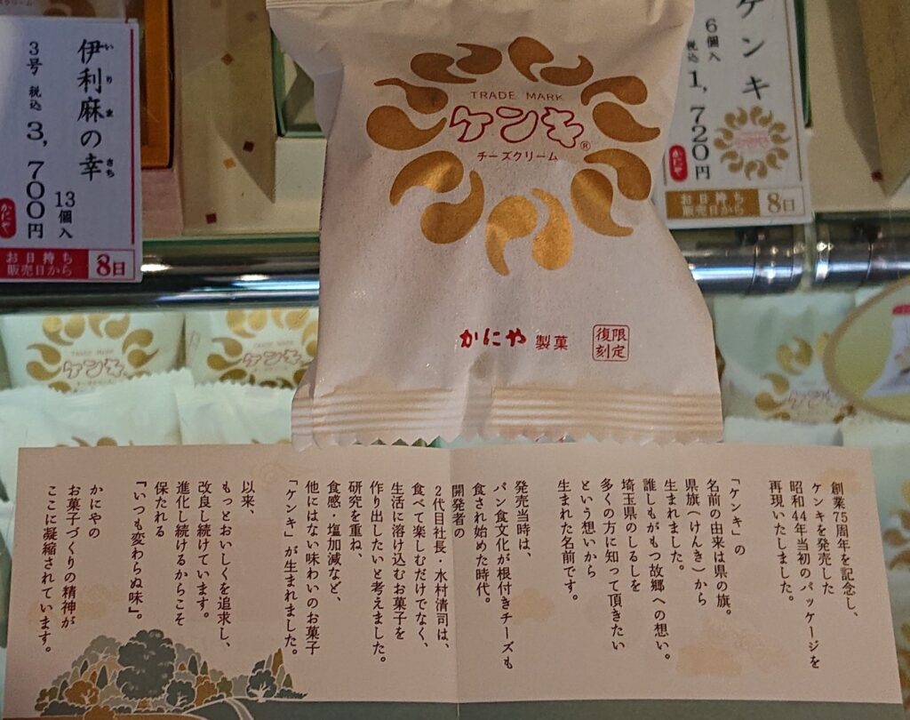 埼玉県の旗「県旗」=📷ケンキは、県議として、他市へのお土産に最適。何より、おいしい👍。県旗だって知らないで買ってる人、多いと思う(^O^)。📷復刻版パッケージは、金ピカで、かっこいい。12月中旬頃までの予定との事。