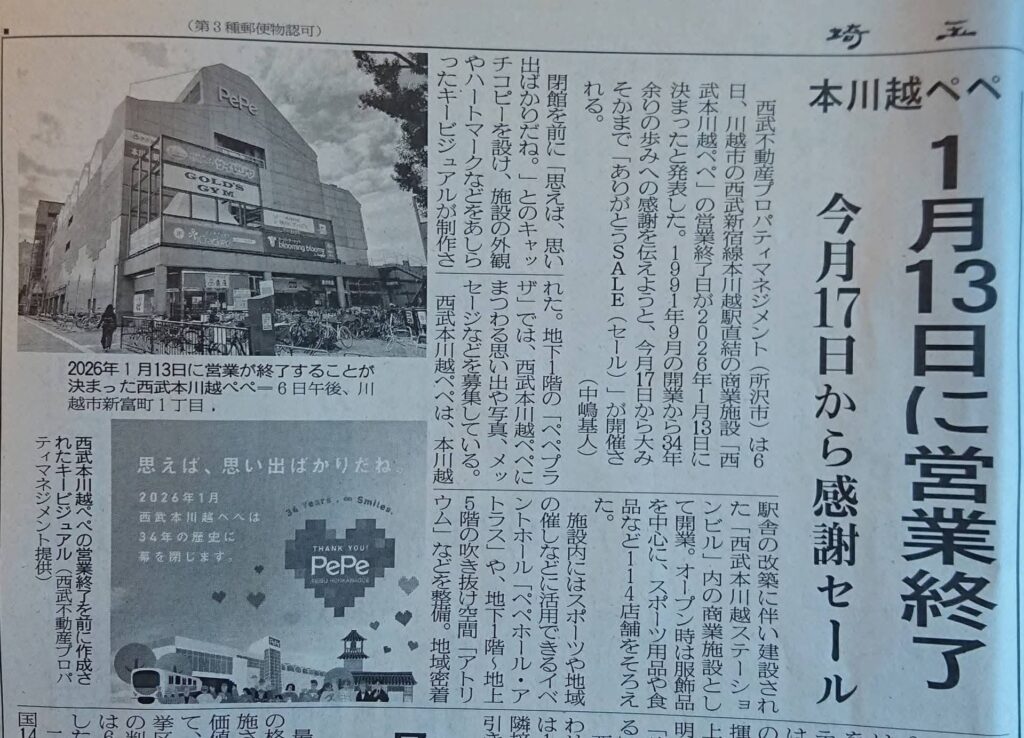 ①📷写真の建物は今日行った、駅前のスーパーが撤退し、代わりに市役所が入った街。②📷️新聞記事は、本川越駅の商業施設が無くなる(「建てかえも含め検討」との事)という今朝の報道。人口減少・高齢化の中、それぞれの街は他から奪おうとするのでなく、付加価値をどう高めるか。旧来の行政的発想では もうどうにもならない。私も経済活動の直接的お手伝いを可能な範囲で行っています(議員給料以外は頂かず)。
