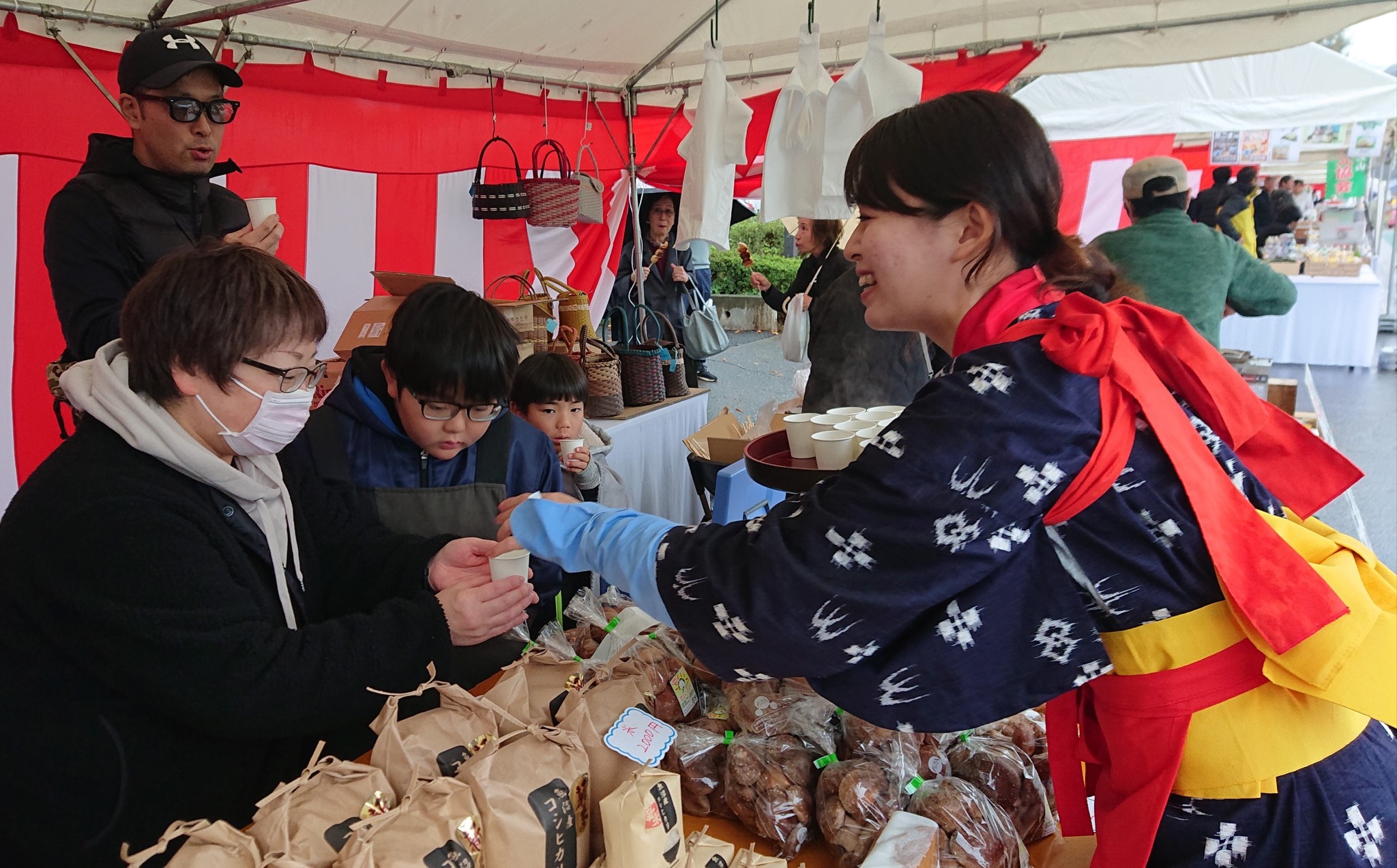 (📷️新潟県津南町の物産展ブース。『さやま大茶会』にて)(狭山市内には茶娘の衣裳を着て、茶摘み体験出来る茶園があります。もちろん男性も(^^))