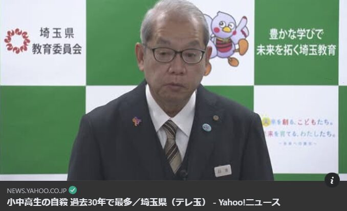 【自殺 小中学生 過去最多】埼玉県