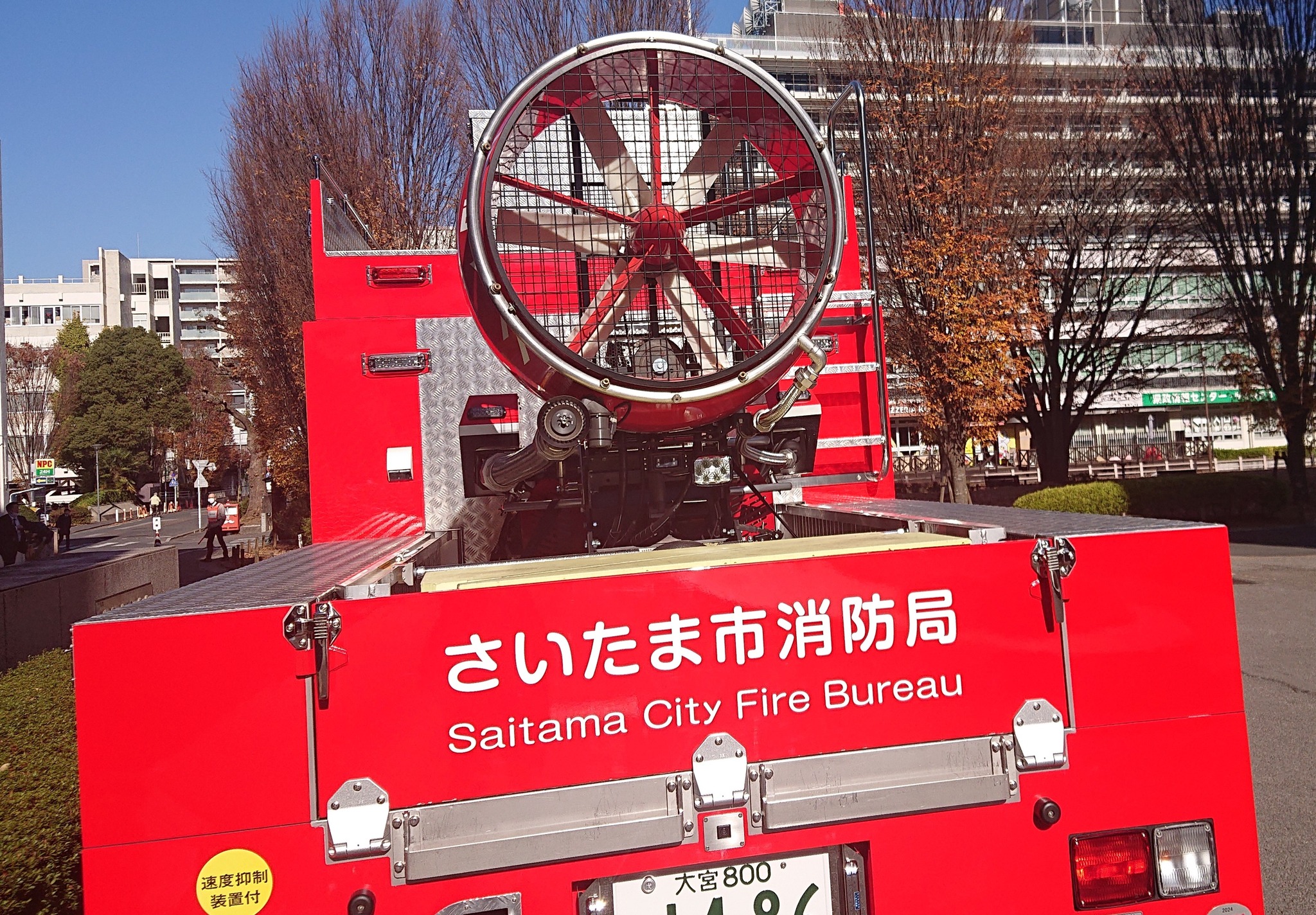 何に使うか。煙などの有毒物質が、1箇所に集中しないよう、吹き飛ばす。「これはとても新しいですが、前回の🚒は、実際に使っています」と隊員の方が個人的に教えて下さいました。