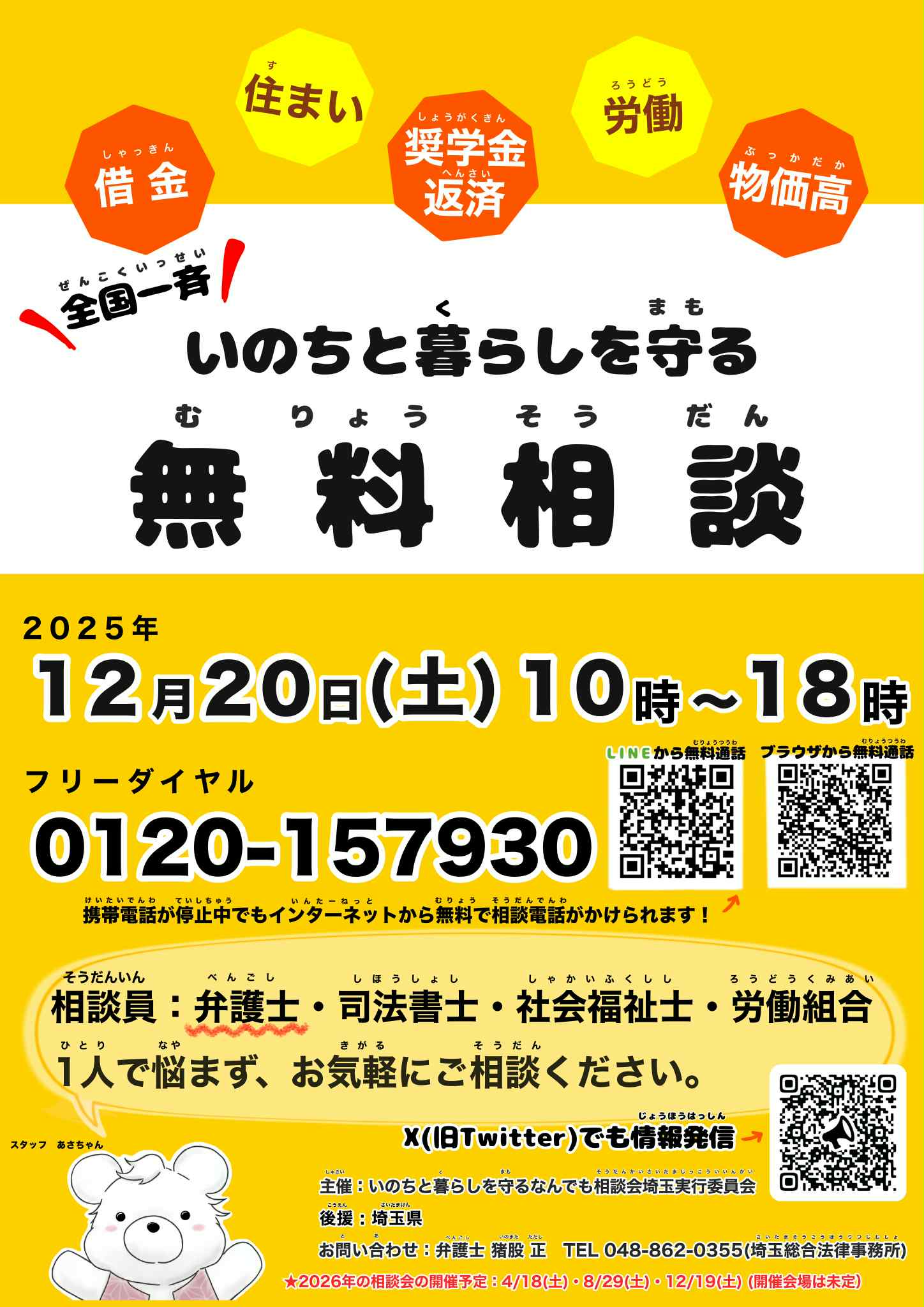 狭山市内でも弁護士さん達にお願いし、相談会を行ないました。市役所も協力してくれています。