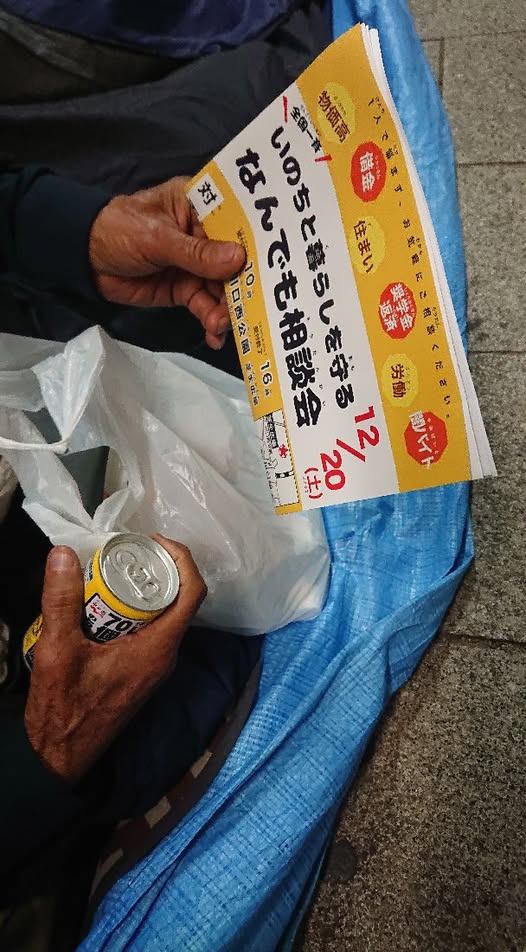 路上生活 📷️右手はボランティアさん達がお渡しした 💛あったかい、ミネラル分の『味噌汁』缶。県議会で👦学校給食👧の補助金の議案があり、🏫給食1食分のミネラルさえ足りていない事が問題になっている事を質問したら、議長が知事に「答えなくていい」と制止・禁止し、知事が答えなかったという、前代未聞な議長の対応が、18日(木)に本会議で ありました。議長という①『権力の暴走』で、②『県民を守る』意識の欠如、③こんな物価高で👧子育て家庭👦に お金が無い時代に、『忙しい』を理由にする😢。後日またお伝えします。