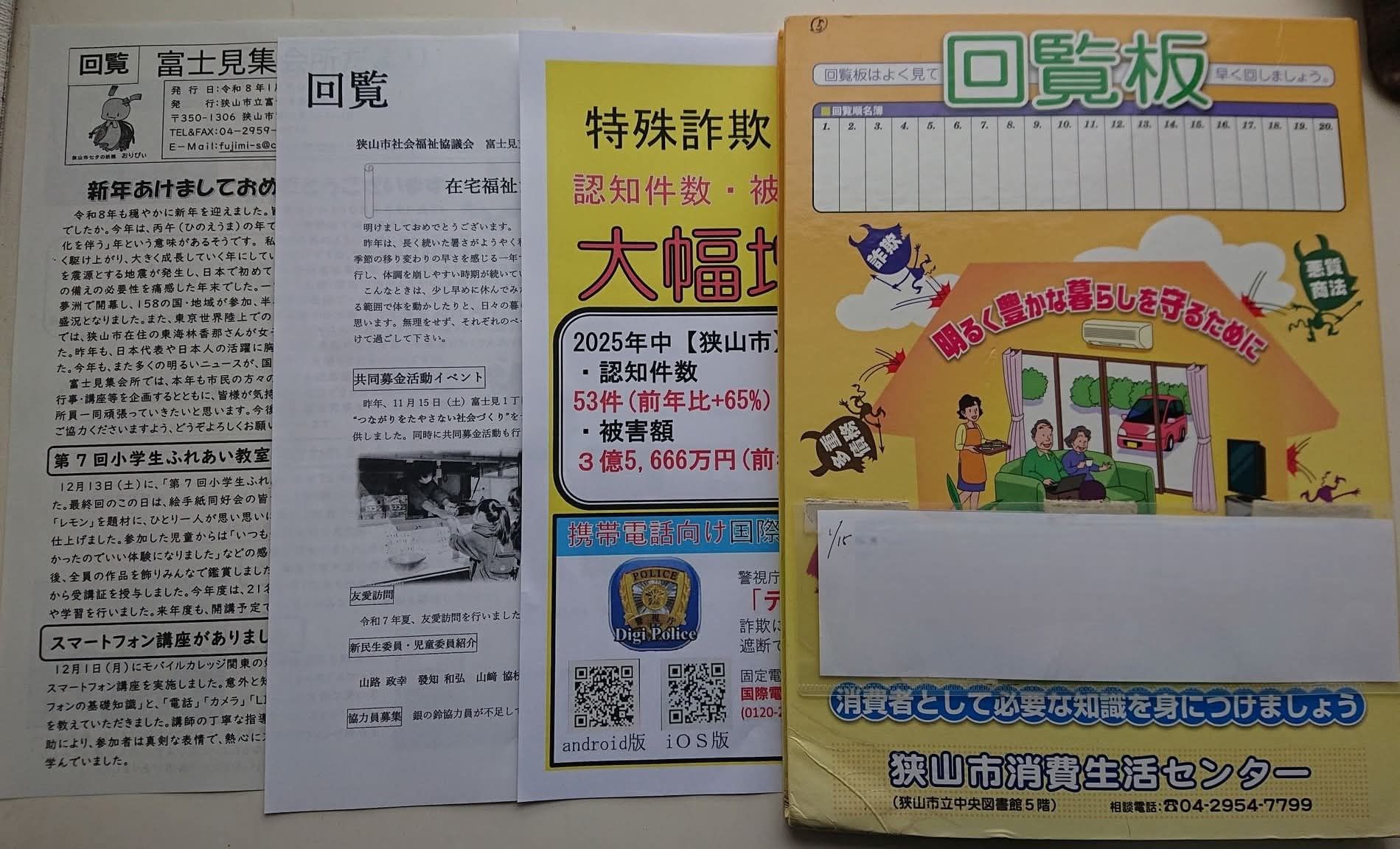 犯罪の『体感治安』を改善しようと『回覧板』で試みております 改革 2026年1月20日 Updated: 2026年1月21日 By 中川 ひろし シェア FacebookTwitterPinterestWhatsApp 犯罪の『体感治安』を改善しようと『回覧板』で試みております。📷黄色いチラシが私がお願いした『詐欺被害者 狭山市 前年比65%増』。手前味噌で恐縮ではございますが、これが無ければ、行政の一方的ルーティンで、真新しい情報は無く、回覧板を高齢者をはじめ、今の時代、回すのは厳しいのかな と感じております。 (🚨警察本部🚓に作成依頼した『狭山市における詐欺被害』の報告チラシ。ご協力下さる自治会から配布をお願い致しております) 私を応援して下さっている皆さま当サイトは『都道府県議会議員アクセスランキング 』に参加しております。 1日1回ご覧になった時に、上の「政治家」バナーをポチッと押して頂けると、他の県の議員などの目に触れて、活動に相乗効果が生まれるので、クリックをお願い致します! 中川 ひろしhttp://www.hiroshinakagawa.jpブログランキング参加中!応援よろしくお願いします → にほんブログ村 ・ 人気ブログランキング シェア FacebookTwitterPinterestWhatsApp Latest news 改革 野田よしひこ代表、🎥いま埼玉・所沢に 中川 ひろし - 2026年1月22日 改革 🎥【野田よしひこ代表 演説】の全てを、所沢から中継でお伝えします 中川 ひろし - 2026年1月22日 改革 今回の選挙は、これまでと違う 中川 ひろし - 2026年1月22日 改革 本庄市田中候補の家族に話を聴きました 中川 ひろし - 2026年1月21日 Related news 改革 野田よしひこ代表、🎥いま埼玉・所沢に 中川 ひろし - 2026年1月22日 改革 🎥【野田よしひこ代表 演説】の全てを、所沢から中継でお伝えします 中川 ひろし - 2026年1月22日 改革 今回の選挙は、これまでと違う 中川 ひろし - 2026年1月22日 改革 本庄市田中候補の家族に話を聴きました 中川 ひろし - 2026年1月21日