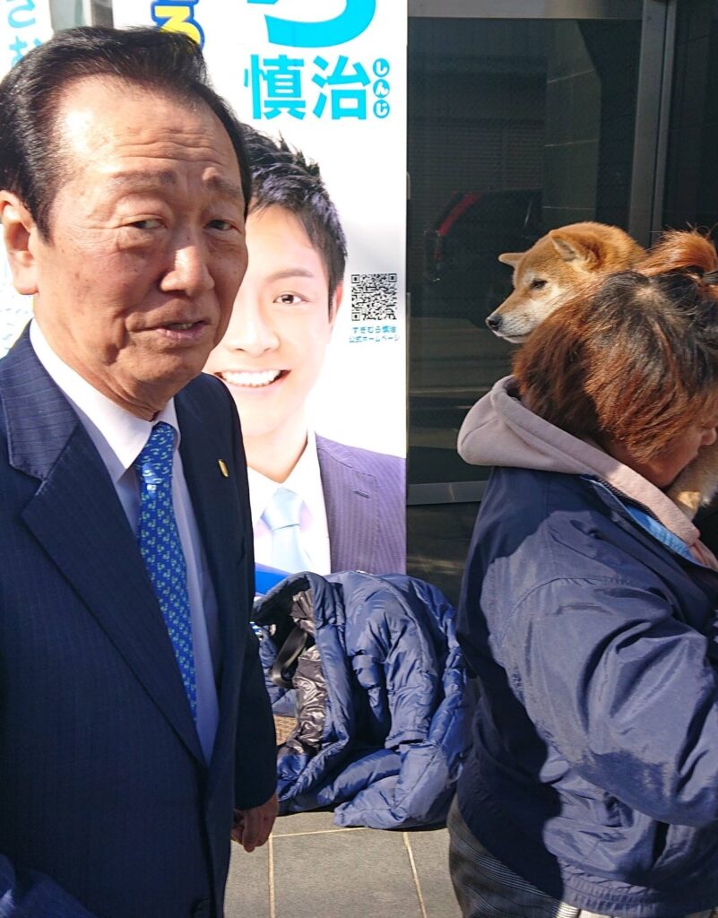 🐶ワンちゃんが、人間・小沢一郎を見ている(^O^)