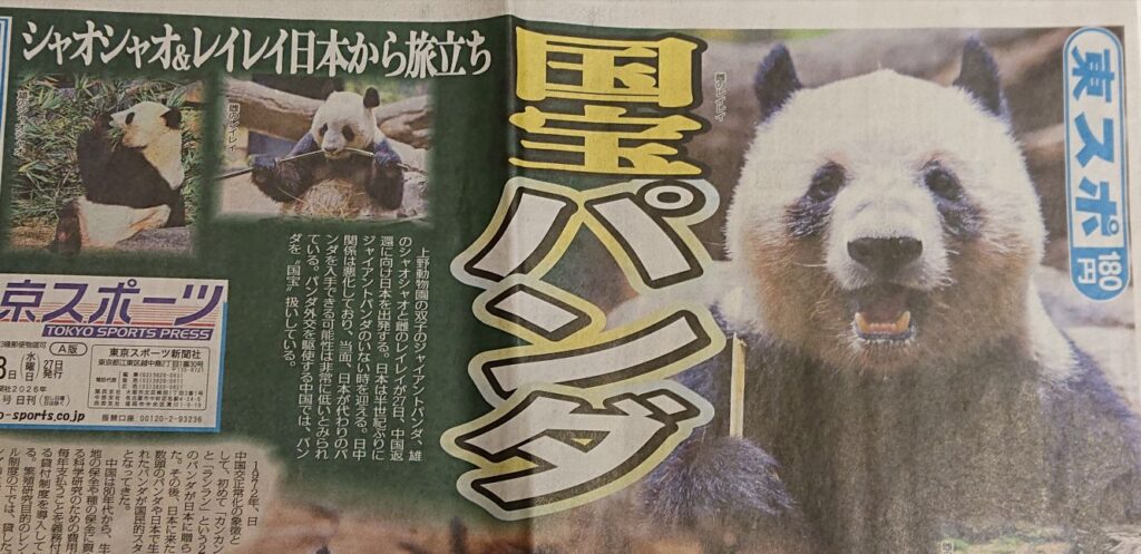 📷昨日の1面が 🐼パンダ。「今の与党でなければ、パンダを返すのは昨日より遅く出来た」と複数の市民から言われ始めています。(鈴木ようすけ候補への🎥インタビュー🎤でも外交問題に触れました)