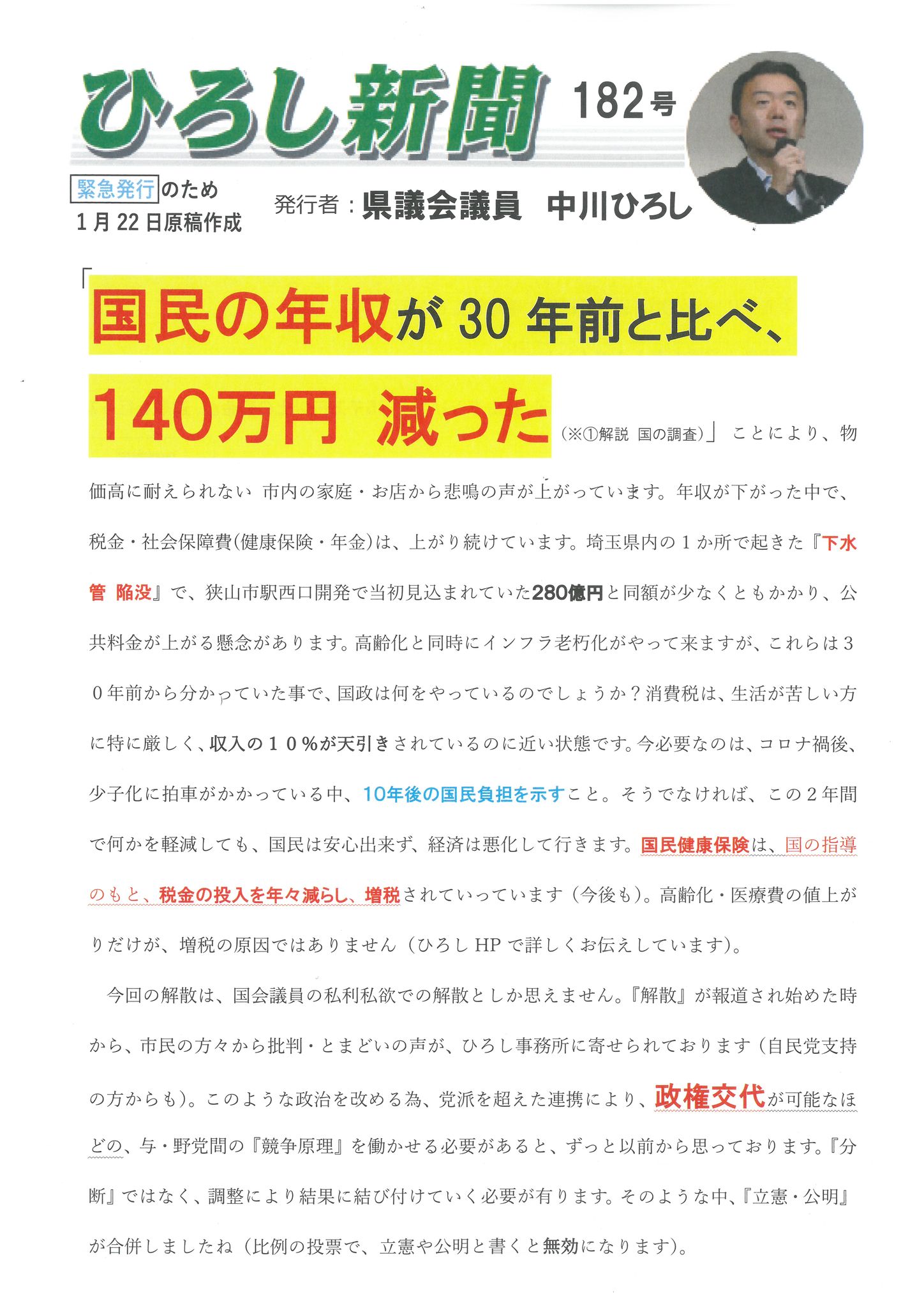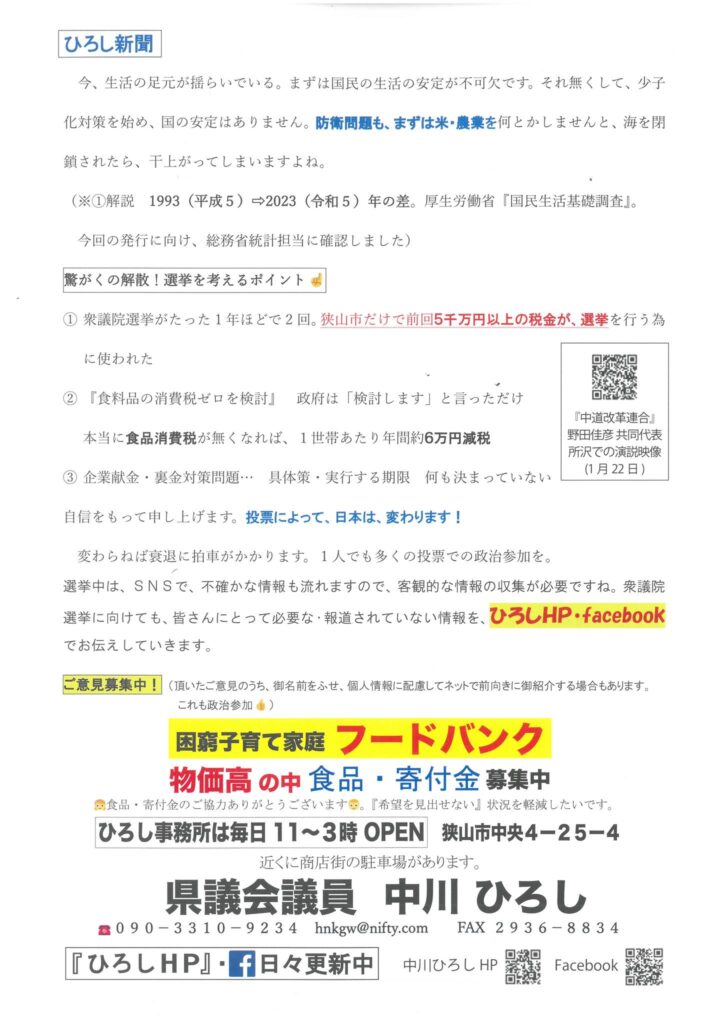 📷️ 選挙直前、緊急で1日で編集し、なんとか新聞折り込みに間に合った ひろし新聞。選挙前に国会議員4人に個人的に会って、この話をしました。#中道改革連合 #野田佳彦 共同代表は、選挙戦 序盤ではこの話を しませんでしたが、#埼玉9区 に来た際 話してくれたので、東松山で、野田さんと #坂本祐之介 候補に ほんの少し話しました☺️。