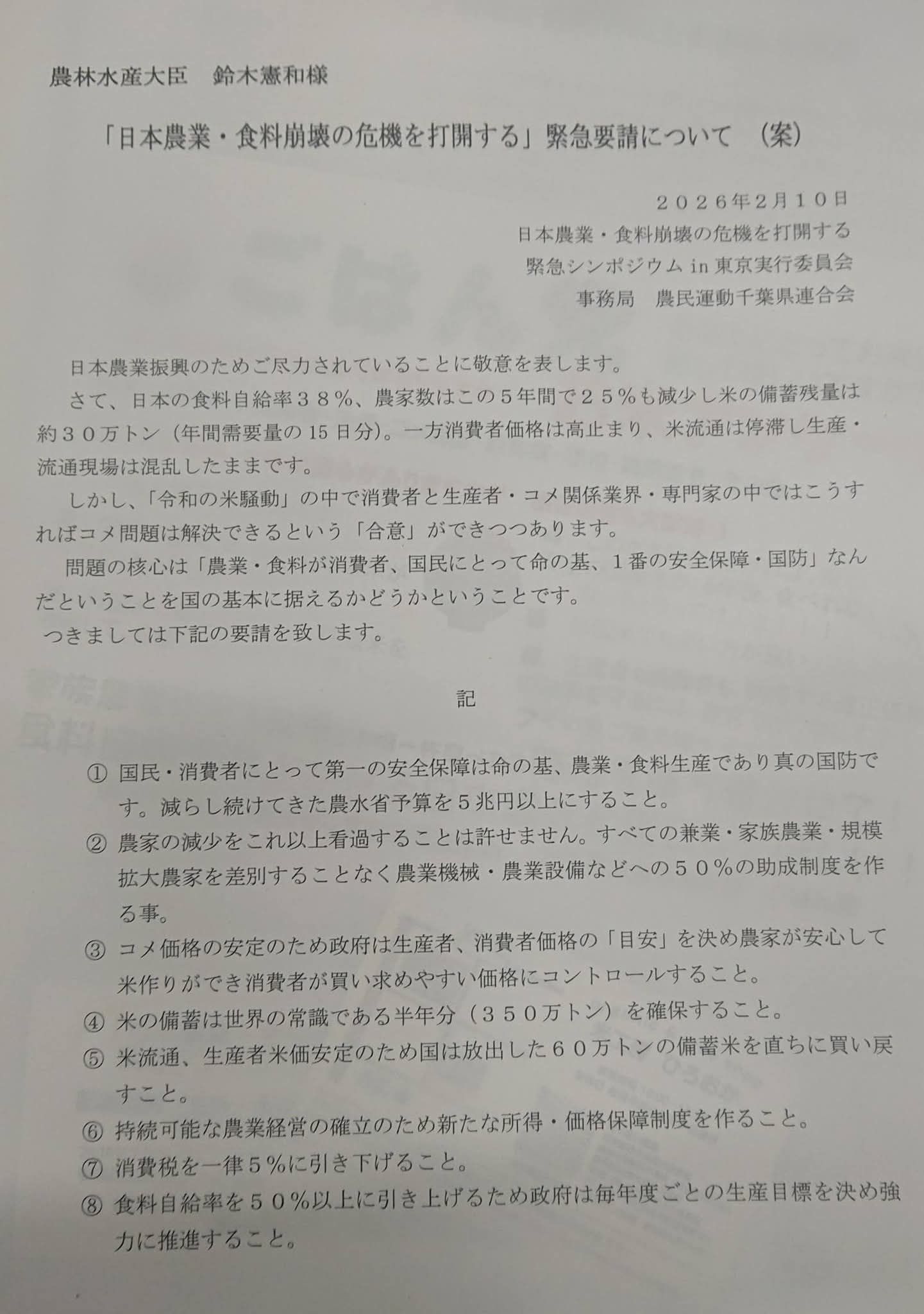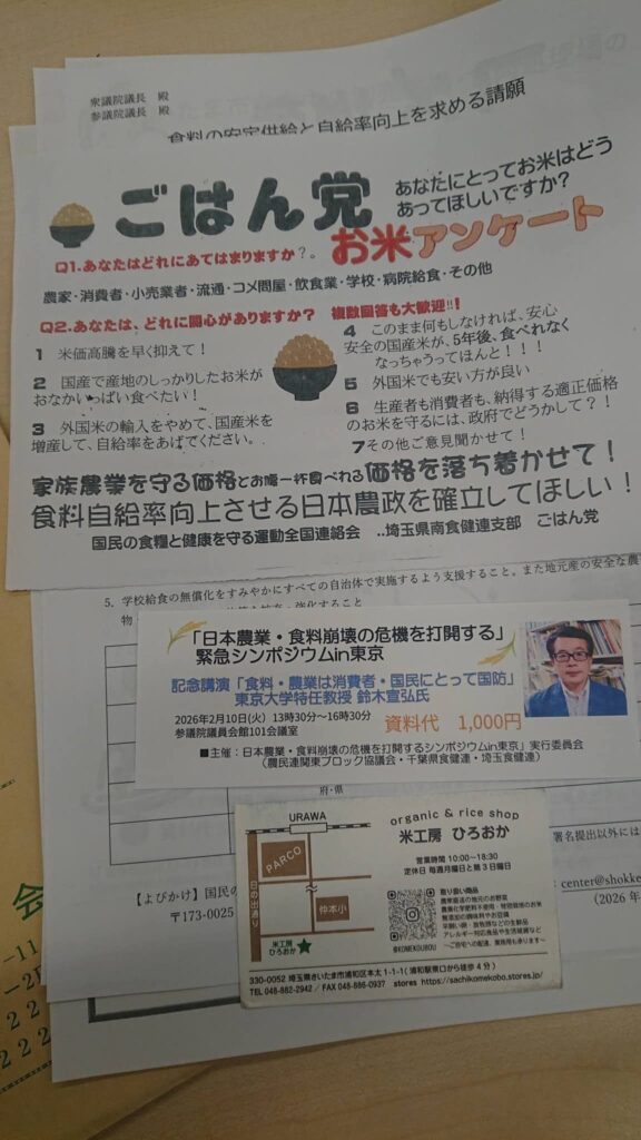 食糧・農業問題 改革 2026年2月10日 Updated: 2026年2月12日 By 中川 ひろし シェア FacebookTwitterPinterestWhatsApp 【🍚食糧・農業問題🍙】 狭山で講演頂いた #鈴木宣弘 先生に📷️根本的問題を📽️独自インタビュー❗ 仲間の市議2人とも意見交換。今後具体的に連携して行きます👍️ いただいたコメントをご紹介いたします 私を応援して下さっている皆さま当サイトは『都道府県議会議員アクセスランキング 』に参加しております。 1日1回ご覧になった時に、上の「政治家」バナーをポチッと押して頂けると、他の県の議員などの目に触れて、活動に相乗効果が生まれるので、クリックをお願い致します! 中川 ひろしhttp://www.hiroshinakagawa.jpブログランキング参加中!応援よろしくお願いします → にほんブログ村 ・ 人気ブログランキング シェア FacebookTwitterPinterestWhatsApp Latest news 改革 国会議員会館での『🍙食糧・農業🍚講演会』 中川 ひろし - 2026年2月11日 改革 東日本大震災後 初の柏崎原発『再稼働』 中川 ひろし - 2026年2月11日 地域振興 「”狭山”茶は、入間市でほとんど取れる」 中川 ひろし - 2026年2月11日 地域振興 『人懐っこい』街にしたい! 中川 ひろし - 2026年2月11日 Related news 改革 国会議員会館での『🍙食糧・農業🍚講演会』 中川 ひろし - 2026年2月11日 改革 東日本大震災後 初の柏崎原発『再稼働』 中川 ひろし - 2026年2月11日 地域振興 「”狭山”茶は、入間市でほとんど取れる」 中川 ひろし - 2026年2月11日 地域振興 『人懐っこい』街にしたい! 中川 ひろし - 2026年2月11日