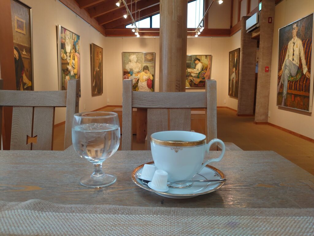 (📷新狭山『ギャラリー麦』にて。絵画展開催中。☕珈琲 なんと380円👍。入場料無し)
