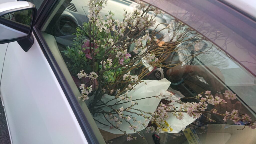 🔶華道連盟の役員さんの🚙車に🌸お花を運んだ時、助手席の天井に とっても ぶつかるほどの 生け花。市民の皆さんの見えない御努力のお陰で、26回目の 開催。