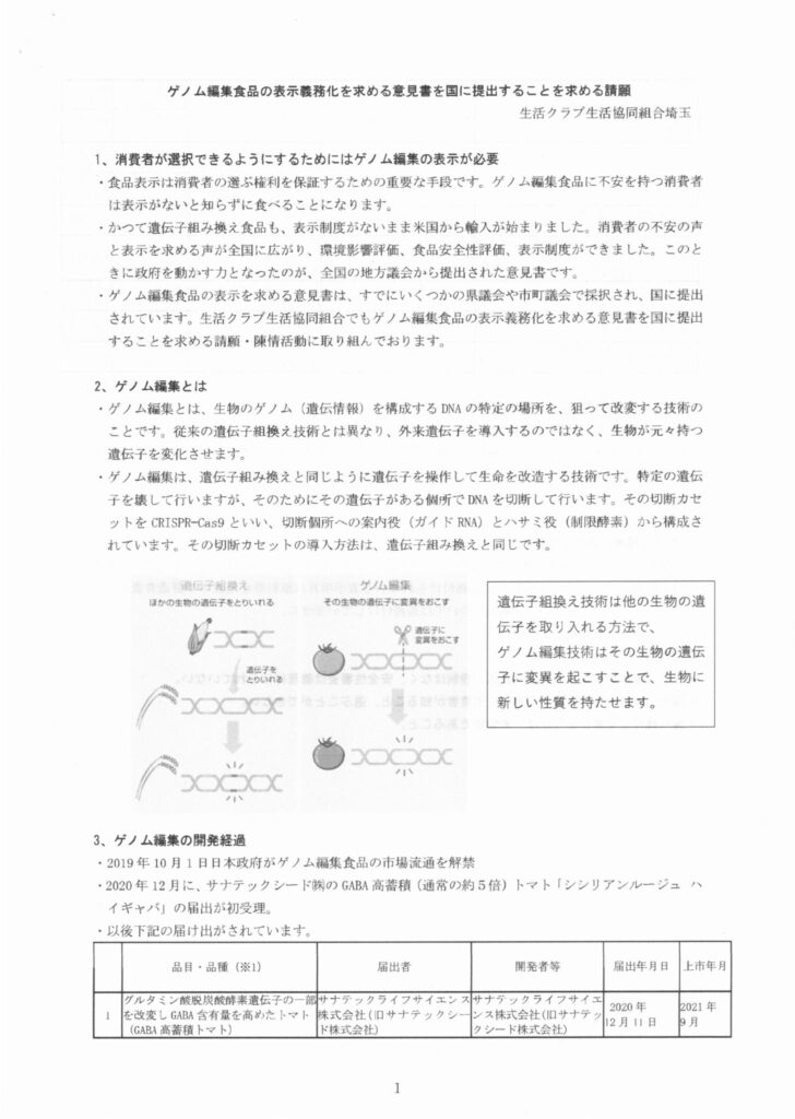 【ゲノム編集食品】問題について、狭山市民を含む県内の団体から県議会に要請があり、山田裕子 県議(越谷)にお世話になりました。私の経験則上、これまでに無い提案をさせて頂き、早速、担当課に伝えましたが、県庁の『消費者』対応には、とても大きな課題があります。狭山市など県西部地域の団体からも別途要請を頂いております。