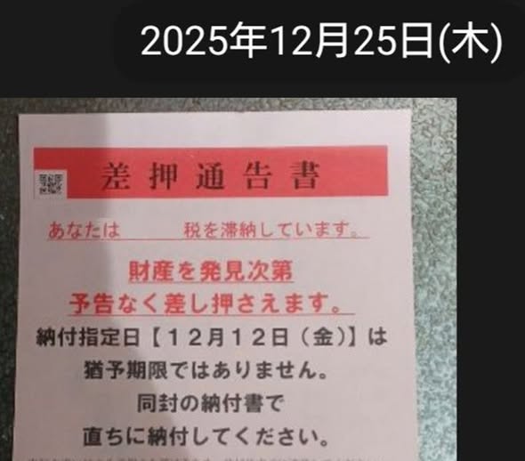県庁から『差し押さえ』の通告 改革 2026年3月15日 Updated: 2026年3月16日 By 中川 ひろし シェア FacebookTwitterPinterestWhatsApp 私より若く、死を避ける為に どうしても必要な 抗がん剤の【治療費さえ払えず】、持ち家ではないから財産と呼べるものも無い狭山市民の所へ、県庁から『差し押さえ』の通告があり、年末、私は予定を急きょ変更し、県庁への対処で 忙殺される。 私を応援して下さっている皆さま当サイトは『都道府県議会議員アクセスランキング 』に参加しております。 1日1回ご覧になった時に、上の「政治家」バナーをポチッと押して頂けると、他の県の議員などの目に触れて、活動に相乗効果が生まれるので、クリックをお願い致します! 中川 ひろしhttp://www.hiroshinakagawa.jpブログランキング参加中!応援よろしくお願いします → にほんブログ村 ・ 人気ブログランキング シェア FacebookTwitterPinterestWhatsApp Latest news 改革 重い病気の狭山市民に送られた『税金の督促』 中川 ひろし - 2026年3月15日 改革 「余命3カ月」の患者さん 帰りに握手した時、私から「ボクの🔥寿命の一部をあげる」と話した 中川ひろし - 2026年3月15日 改革 若い患者さんに 私が送った📷LINE 中川ひろし - 2026年3月15日 改革 その方の 病気を知り、LINEを始めたのは昨年9月 中川ひろし - 2026年3月15日 Related news 改革 重い病気の狭山市民に送られた『税金の督促』 中川 ひろし - 2026年3月15日 改革 「余命3カ月」の患者さん 帰りに握手した時、私から「ボクの🔥寿命の一部をあげる」と話した 中川ひろし - 2026年3月15日 改革 若い患者さんに 私が送った📷LINE 中川ひろし - 2026年3月15日 改革 その方の 病気を知り、LINEを始めたのは昨年9月 中川ひろし - 2026年3月15日