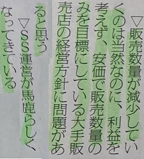 祖父は、三浦海岸 海水浴場の目の前の、有数な場所で『ガソリンスタンド』を創業し、親戚が社員として働き、後継者もおりましたが、もう お店は ありません。狭山市内のGS個人店は、5店。無くなったら、住民も困ります。県庁は、代弁者となれるか。