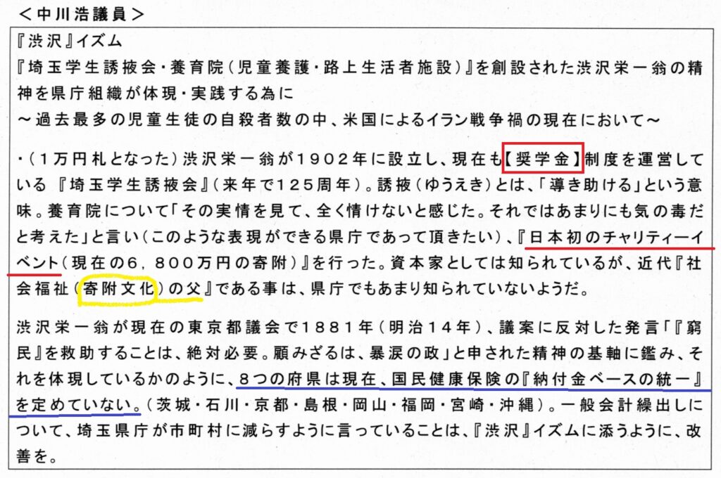 改革県議会 2026年3月24日 Updated: 2026年3月25日 By 中川 ひろし シェア FacebookTwitterPinterestWhatsApp 📺TV埼玉で 私の議会発言 放送。あす25日(水)夜8時50分過ぎから、4分間。3チャンネルを録画してご覧下されば、幸いです。 1期に2回しか無いTV埼玉での放送です。 番組は7時~9時まで。 私を応援して下さっている皆さま当サイトは『都道府県議会議員アクセスランキング 』に参加しております。 1日1回ご覧になった時に、上の「政治家」バナーをポチッと押して頂けると、他の県の議員などの目に触れて、活動に相乗効果が生まれるので、クリックをお願い致します! 中川 ひろしhttp://www.hiroshinakagawa.jpブログランキング参加中!応援よろしくお願いします → にほんブログ村 ・ 人気ブログランキング シェア FacebookTwitterPinterestWhatsApp Latest news 改革 【思い悩める力】 中川 ひろし - 2026年3月24日 地域振興 日曜日、『春フェスタ狭山台』の後片付けは4時半まで💦ボランティアさんお疲れ様でした 中川 ひろし - 2026年3月24日 改革 都道府県議会議員の『産前産後』の欠席(休暇ではなく)について規則改正案の賛否 中川 ひろし - 2026年3月24日 改革 物価高の中、『抑えなければならない支出・してはいけない増税』もある 中川 ひろし - 2026年3月24日 Related news 改革 【思い悩める力】 中川 ひろし - 2026年3月24日 地域振興 日曜日、『春フェスタ狭山台』の後片付けは4時半まで💦ボランティアさんお疲れ様でした 中川 ひろし - 2026年3月24日 改革 都道府県議会議員の『産前産後』の欠席(休暇ではなく)について規則改正案の賛否 中川 ひろし - 2026年3月24日 改革 物価高の中、『抑えなければならない支出・してはいけない増税』もある 中川 ひろし - 2026年3月24日