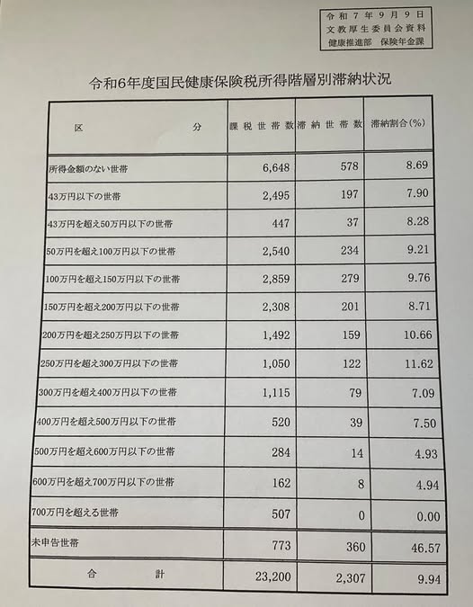 最後のセーフティーネット🔥の国民健康保険。 収入によって、税金を何割の人が払えて(払って)いないか、県庁が調査を渋っているので、市議にお願いして送ってもらい、県庁の担当管理職に渡しました。