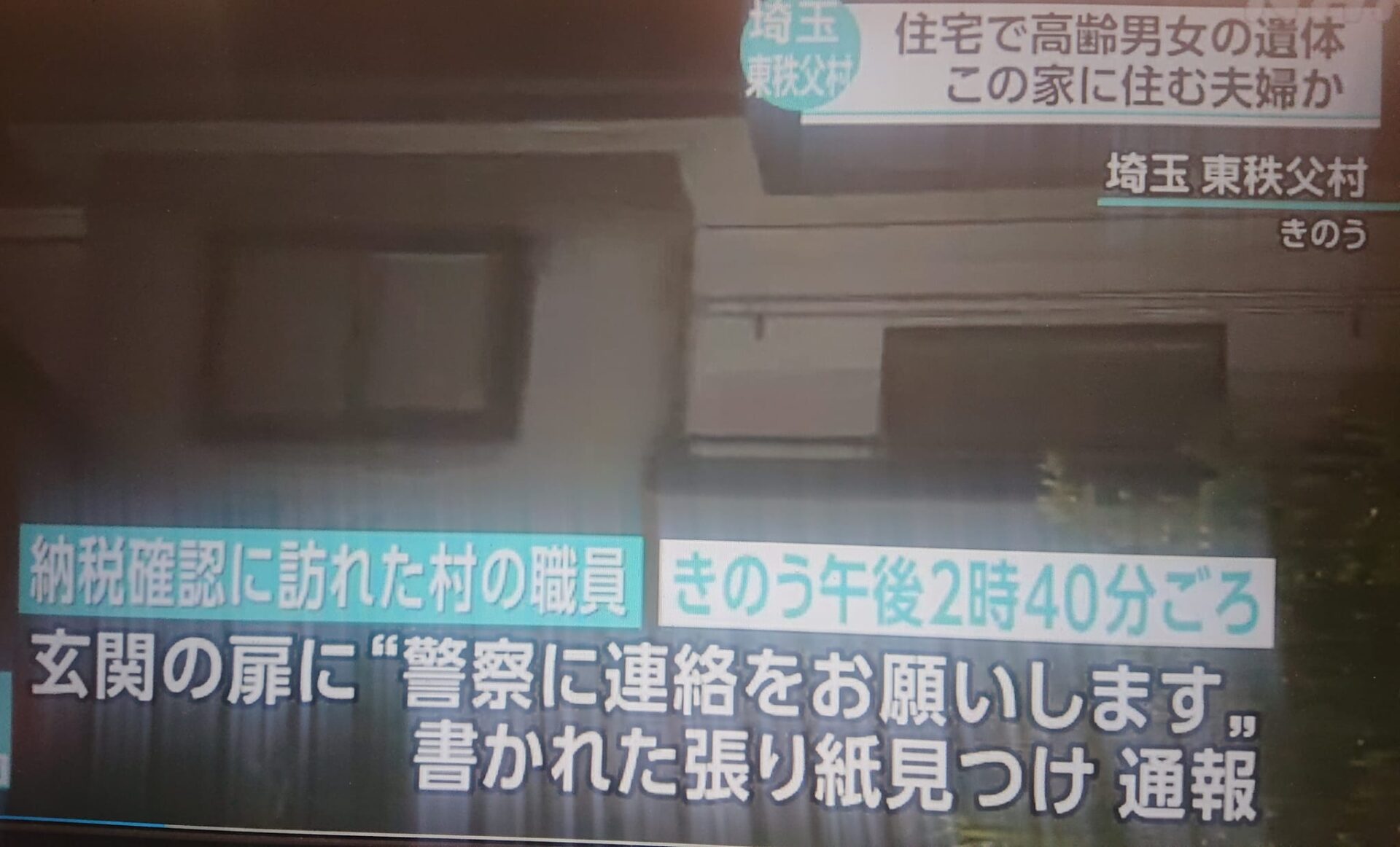 2023年12月7日(木)に配信された学習会の映像をYoutubeにて公開しました。 是非ご覧下さい⇩ 国保』など税金払えない家への【取り立て 2人自殺】 埼玉県内ニュース映像になってました。現在調査を進めていますが、県庁では何の教訓にもなっていません。県庁の存在意義とは??? 県庁が埼玉県は『ダサいか・ダサくないか』調査を職務としている中。 埼玉県東秩父村の住宅で高齢男女2人の遺体(NHK News Web)