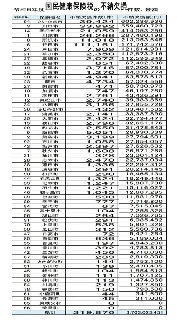 まず何より、国保を滞納している加入者数は、埼玉県は全国6番目に多い状況です(令和3年)。