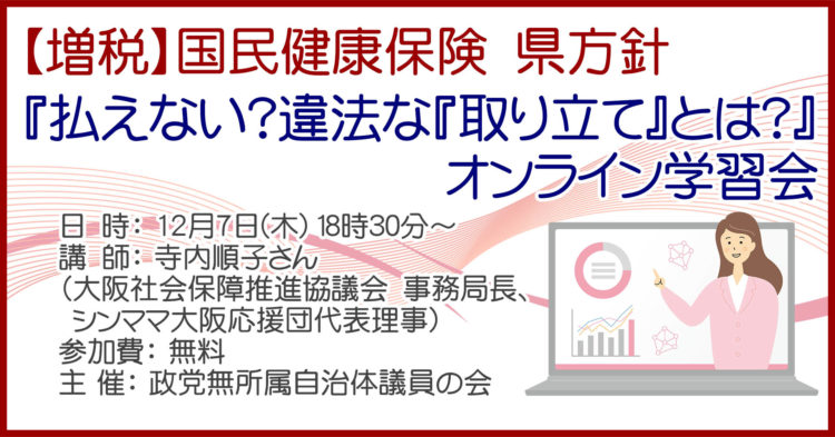 『国民健康保険税(国保税)』を払えない県民が出てしまっているのは、低所得者対策として国保への【税金投入】を市町村が独自に行なっていたのに、県庁がやめるよう指導していて、税金投入出来ない分を増税しているせいでもあります。実際に払えない狭山市民から相談を頂いており、このままでは経営しているお店が担保に取られ、無くなってしまいかねない方も。そこで、県内の市町村議員とも グループで連携して取り組んでいます。